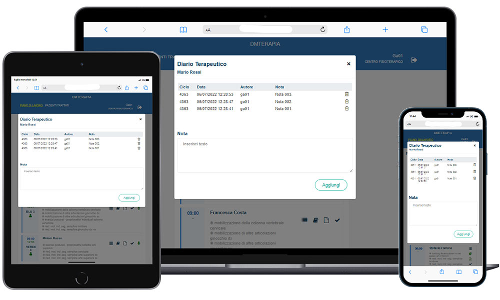 - gestire e aggiornare in maniera condivisa con gli altri terapisti un diario terapeutico;